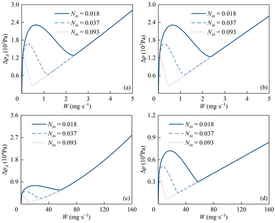 This partial derivative, which is proportional to the square of the inlet subcooling, can be used to approximately characterize how drastically the two-phase flow region (Zone II) changes with mass flow rate. As Nin increases, the magnitude of this partial derivative rises, suggesting a steeper channel load curve in Zone II. Comparison of the slopes at points a, b, c, and d leads to the same conclusion. Since the entry effects significantly increase the pressure drop in Zone III while the pressure drop in Zone I remains almost constant, the channel load curve in Zone II is consistently flatter than that under the fully developed assumption at different Nin. Thus, the entry effects will accelerate the process of approaching the critical inlet subcooling.