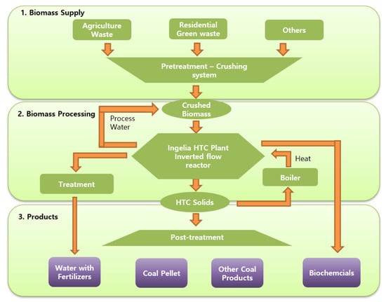 - Ischia, G.; Fiori, L. Hydrothermal carbonization of organic waste and biomass: A review on process, reactor, and plant modeling. Waste Biomass Valorization 2021, 12, 2797–2824. [Google Scholar] [CrossRef]