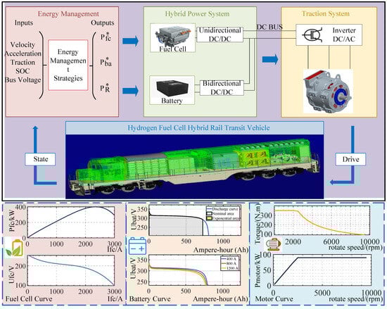 - Zou, Z.; Kang, J.; Hu, J. Analysis of Energy Management Strategies For Hydrogen Fuel Cell Hybrid Rail Transit. In Proceedings of the 2023 IEEE PELS Students and Young Professionals Symposium (SYPS), Shanghai, China, 27–28 August 2023; pp. 1–6. [Google Scholar] [CrossRef]