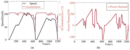 New test condition. (a) Train driving cycle. (b) Train power demand.