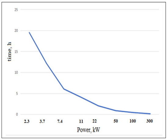 - The charging power depending on the battery capacity was calculated according to the following formula: