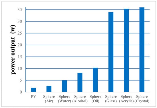 - The power output of the spheres filled with oil is the highest among other materials. The sphere filled with oil produces four to five times more electricity than a PV with the same sectional area/installation area. This specific sort of compression is crucial because it shows that less space is required to establish this system than it would to install conventional solar panels. It will decrease the installation space by 40% to 60% or less.