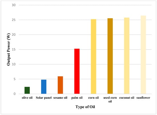 - While comparing nine kinds of oil, the results reveal that cooking oil (sunflower and corn oil) generates the highest output power hence the highest efficiency. In addition, the pure new oil that is not used was tested against the used oil of corn oil and sunflower oil, and the findings were astounding in that the used oil in both cases performed better than the fresh unused oil. It appears that the viscosity and reflection index have little bearing on the outcomes when considering the oil’s qualities and requirements. The results are greatly influenced by the density and hue/color. The highest power generation occurs at higher densities, leading to higher efficiency. And because clear and light colors generate the most power, they are more efficient.