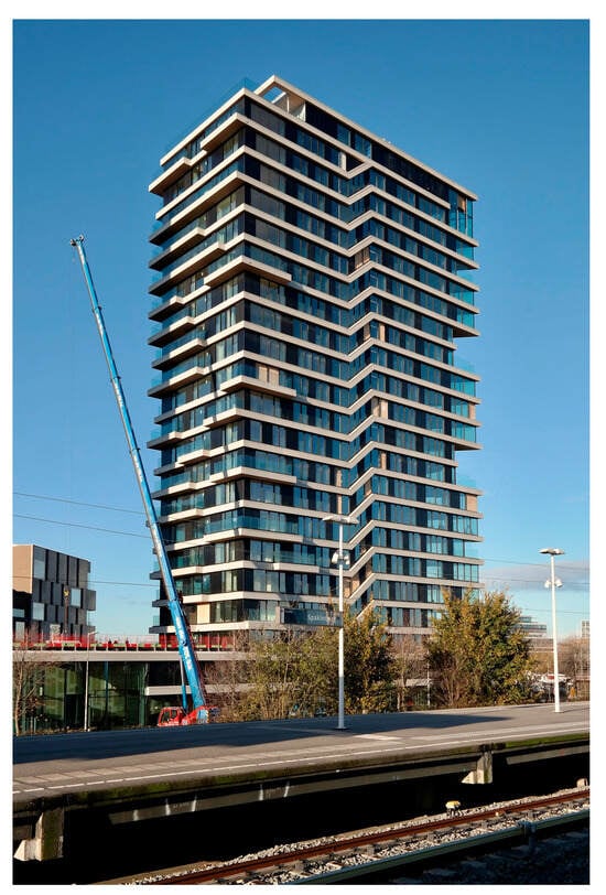 Building B of the building complex Strandparken was erected in Sundbyberg in the northern part of Stockholm in 2014 [10,25]. The building has one underground storey, eight above-ground storeys, and a height of 27 m above ground level.