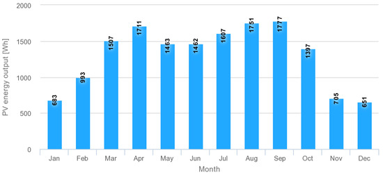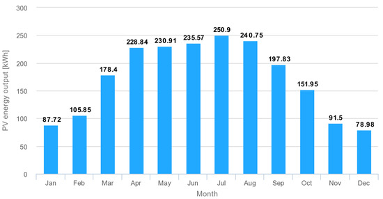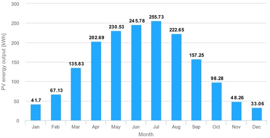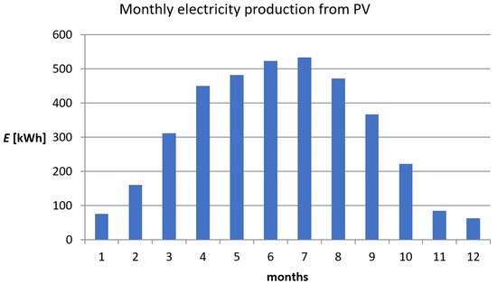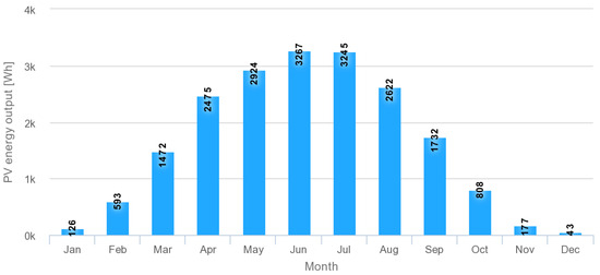 A summary of the monthly energy production from PV panels for the proposed optimal panel arrangement (Table 2) is shown in Figure 2.