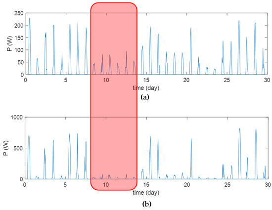 The profiles presented were averaged over a month. To analyze module self-sufficiency, it is necessary to consider the least favorable case, which is the period with the lowest energy production. For the range of data analyzed in 2020, this was December. Figure 10 below shows the energy production course in December 2020.
