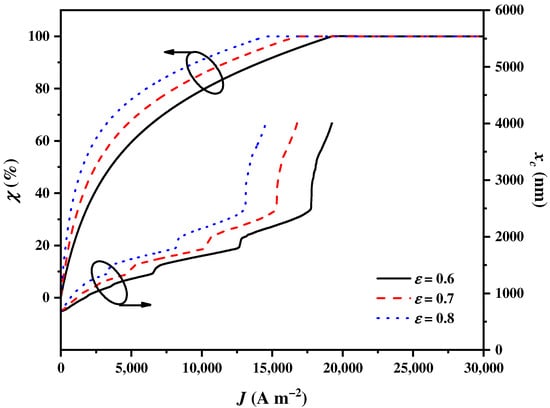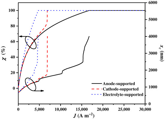 The balance parameter χ and the cut-off wavelength varying with the current density using different SOEC support types.