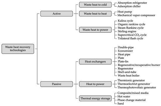 Zhang et al. [70] classified waste heat recovery technologies into three main categories, namely direct utilization, transformation into electricity, and cascading systems which involve direct use of the higher-temperature heat, while the remaining portion is transformed to electricity. Similarly, Brueckner et al. [71] identified four modes of waste heat recovery:
