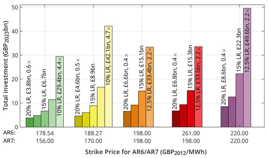 For scenarios where the AR7 price is higher, and thus the cost reduction takes longer, the impact of future electricity prices will be more significant. However, the AR7 Strike Price and particularly the learning rates beyond have a more significant impact on the total subsidy required.