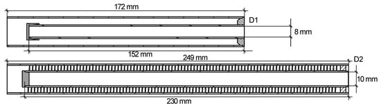Due to the purpose of examining the influence of the adsorbent reservoir heat exchanger’s design on the dynamic properties, two different demonstrators, D1 and D2, were built. Since adsorption is a thermally driven process, efficient heat transfer between the reservoir heater and the adsorbent is crucial for applications with high requirements for dynamic properties. To improve heat transfer, instead of using a regular inner tube, D2 uses an inner tube with spiral-shaped fin to increase the heat transfer area. Figure 3 shows a cross-sectional view of the adsorbent reservoir of D1 and D2.