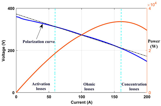 Because hydrogen is a versatile fuel, an energy carrier, and not an energy source in and of itself, it must be converted into electricity using a device known as a fuel cell stack. Figure 5 represents the PEM fuel cell polarization curve.