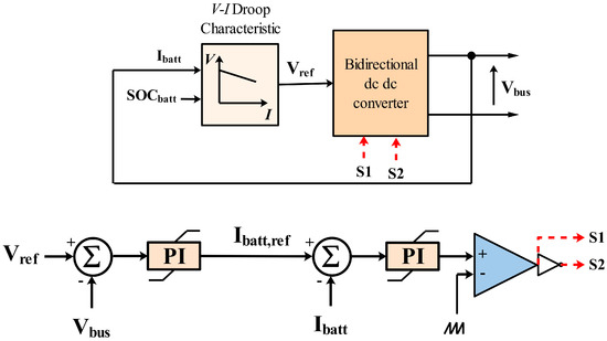 In order to balance the DC bus power, the battery is regulated by the V-I droop controller [24], as mentioned in Figure 6.