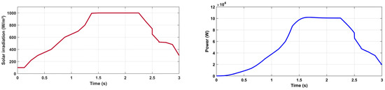 The input current of the PEM electrolyzer reaches its maximum at the peak of the PV power system Figure 11. Since the electrolyzer is powered by the PV system, when there is an excess of energy, the current of the electrolyzer reaches its maximum at the PV system’s peak output power.