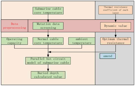 Based on the above analysis, in this paper, the overall process of calculating and correcting a submarine cable’s burial depth is designed, as shown in Figure 10.
