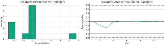 A residual analysis was also conducted on the regression model for the transport sector. Figure 6 presents the residuals histogram and autocorrelation plot for this sector.