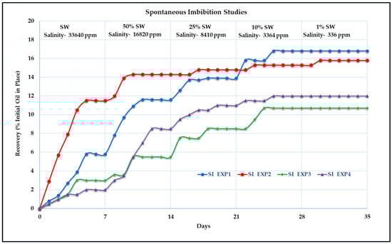 Experimental result of spontaneous imbibition studies (SI Exp 4).