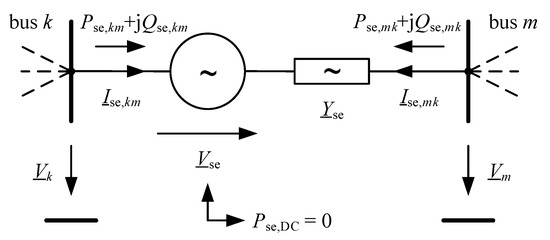 The powers Sse,km/mk = Pse,km/mk + jQse,km/mk at the terminals of the series element (index ‘se’) are calculated as given in (4) and (5) with Yse being the admittance of the series element and Vse the internal (controllable) voltage as the decision variable of the optimisation problem.