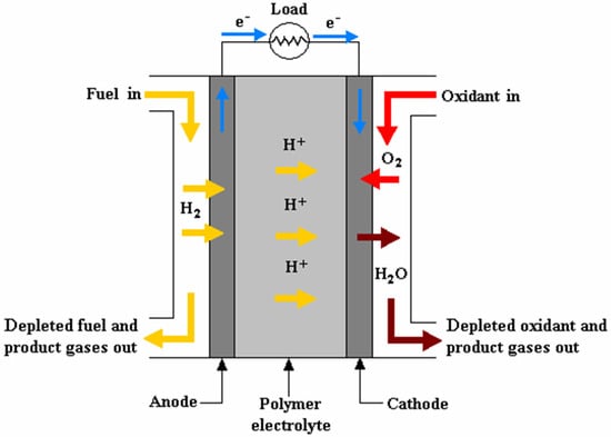 At the heart of a basic PEMFC is an electrochemical reaction that takes place within the cell’s membrane electrode assembly (MEA). This reaction can be represented as follows [42]: