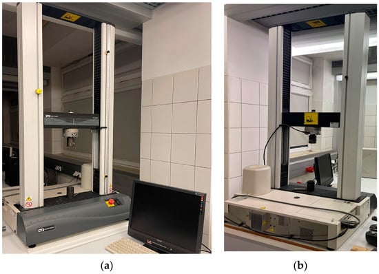 The Instron 3369 testing machine used for strength analysis: (a) front; (b) back.