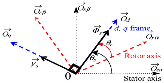 To establish the DFIG model, it is convenient to refer to the electric equations of the rotating Park reference frame that is synchronized with the stator flux (Figure 5) since the DFIG-based WECS presented in this study supplies an isolated load via its stator voltages.