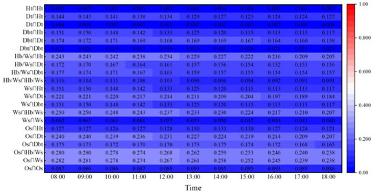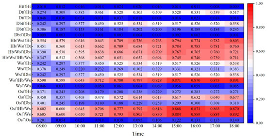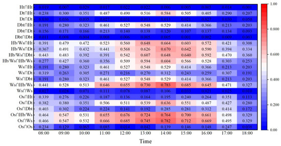 TA diagrams of different factors from 08:00 to 18:00.