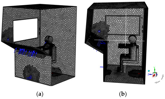 The complex geometry of vehicle cabins makes the use of analytical methods impossible. To directly determine the values of thermal comfort fields at each point of the internal domain, the solution of three-dimensional hydrodynamic equations using CFD analysis is required [44,45,46,47,48,49]. Therefore, in the aforementioned studies [50,51], CFD investigations were conducted on vehicle ventilation systems in tropical climates. A study was conducted on ACH in airplanes, cars, and buses, as well as the impact of passenger arrangement on cabin air flow structure.