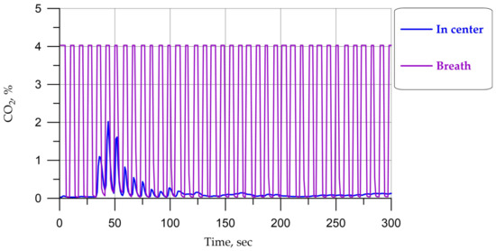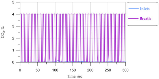 The concentration of carbon dioxide and humidity during respiration were specified over time by piecewise constant functions (set 1) in accordance with Table 3.