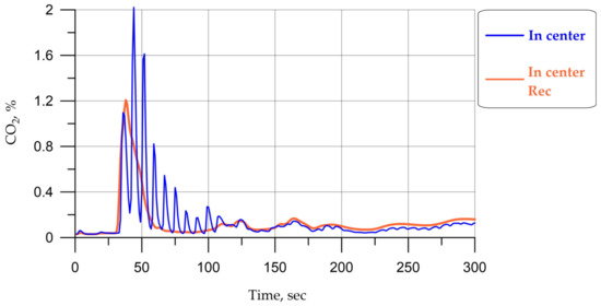 CO2 concentration values in the center over time in summer mode, as well as in recirculation mode.