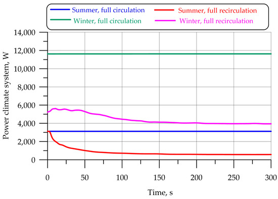 The problem was solved for summer and winter modes; accordingly, the cooling and heating of the cabin were modeled in the time domain.