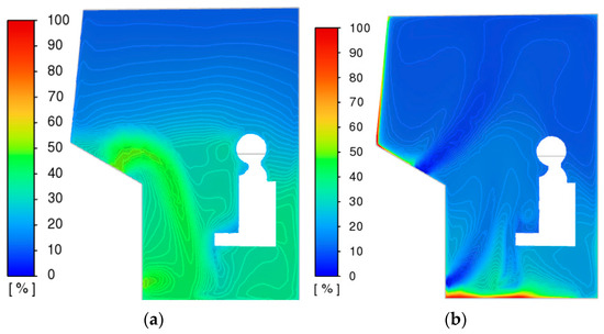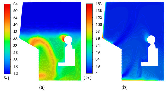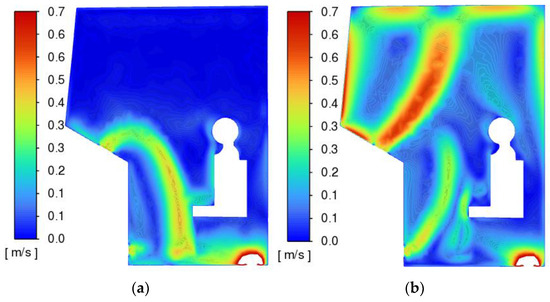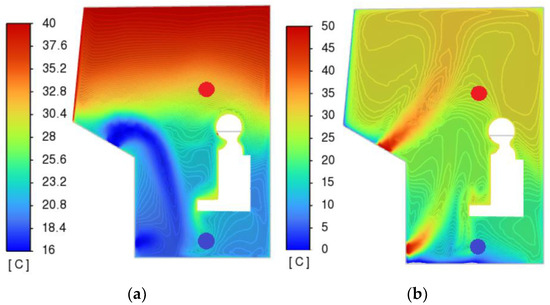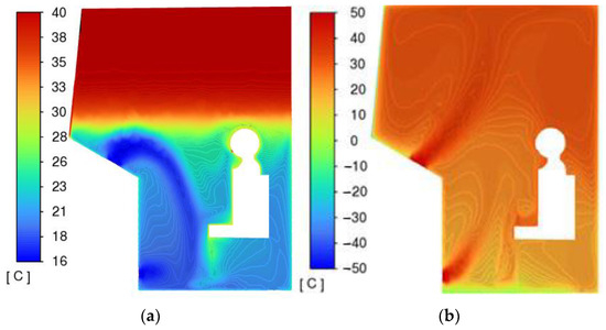 In order to consider heat exchange with the environment, convective heat transfer was used to model the cabin wall and external domain (8). As an applied theory for obtaining heat transfer coefficients α, the Jurgens formula was used [40]. Parameter values are given in Table 4.