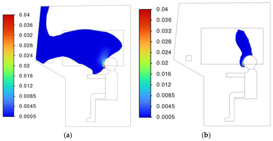 Here, is the volume of inhaled air per breath, m3; —time of one breath, s; and is the inhalation–exhalation surface area (nasal or oral surfaces), m2.