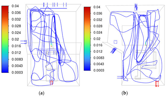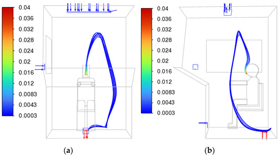 - Alrebi, O.F.; Obeidat, B.; Abdallah, I.A.; Darwish, E.F.; Amhamed, A. Airflow dynamics in an emergency department: A CFD simulation study to analyse COVID-19 dispersion. Alex. Eng. J. 2022, 61, 3435–3445. [Google Scholar] [CrossRef]
