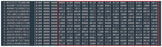 Sample of test data simulating double-precision floating point calculations to illustrate bit patterns used for matrix elements and the corresponding numerical values.