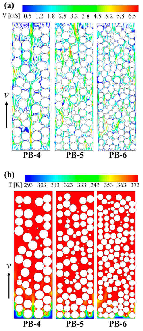 These findings underscore the nuanced interplay between the structural features, flow, and heat transfer characteristics of hydrogen fluid within packed beds, which are critical for optimizing industrial applications such as hydrogen storage and hydrogen utilization.