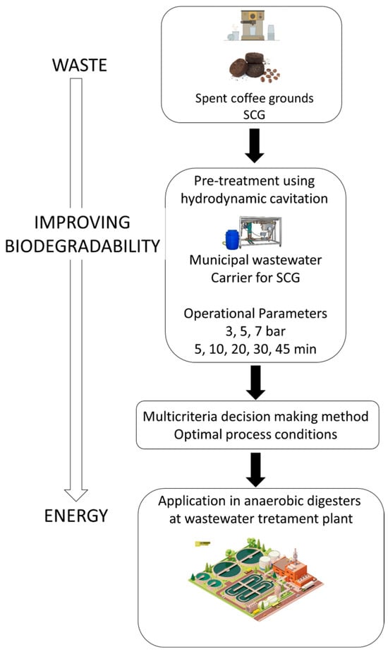 Additionally, multi-criteria decision-making analysis was undertaken, leading to an optimal decision. As a result, optimal HC parameters such as inlet pressure and time circulating the cavitated medium via the system were indicated. Thus far, such multifaceted studies in the field of application of HC for this waste have not been conducted. The proposed technology might allow for the beneficial, sustainable use of SCGs in biological processes with energy recovery.
