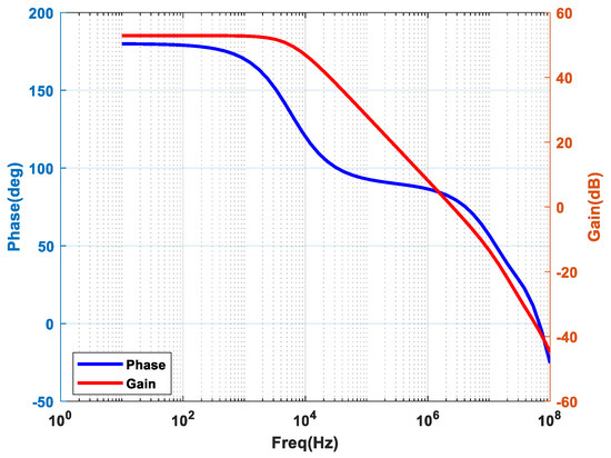 Figure 11 shows the frequency response results of the proposed reference voltage circuit. It can be seen that the loop phase margin of the proposed reference voltage circuit is 80.74 deg, which indicates that the proposed reference voltage circuit has sufficient phase margin to avoid output voltage oscillation and instability during startup.
