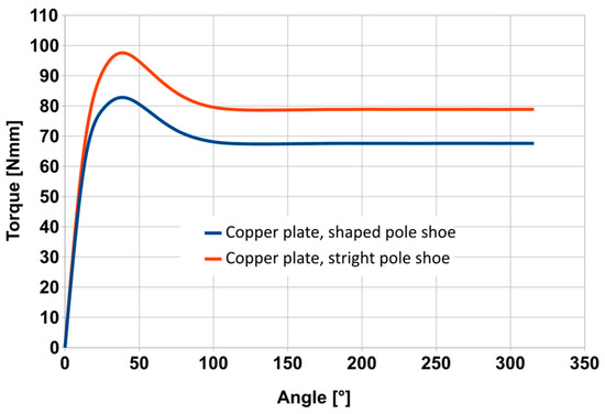 Figure 15b). However, this modification did not significantly change the value of the electromagnetic torque. The penetration of the field into the plate (