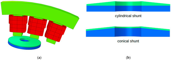 Figure 11b) and the conical copper plate with a rotating cylindrical magnetic shunt (