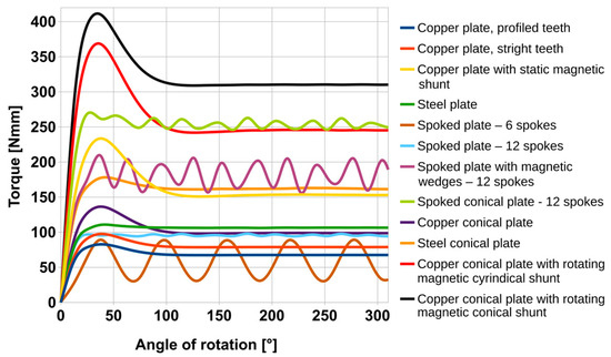 Figure 13) show that the highest average torque value was obtained for a conical copper drive plate with a rotating conical magnetic shunt (