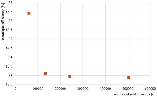 Value of isentropic efficiency of compression obtained for different grid sizes.