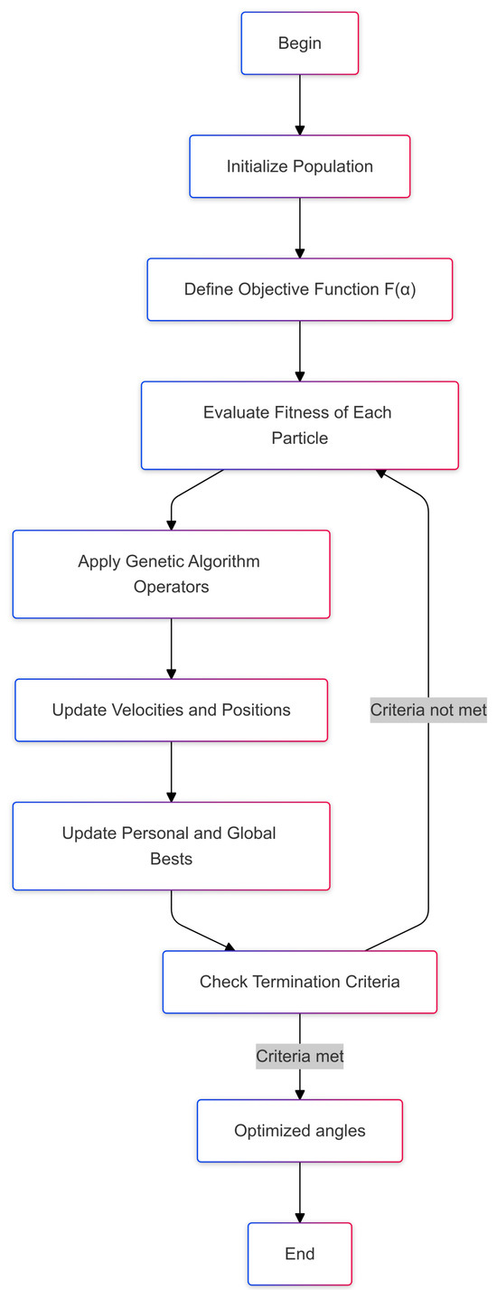 The rationale behind combining the GA and PSO is due to their complementary nature. While the GA offers a superior exploration of diverse regions in the solution space, PSO provides faster convergence toward local optima. This hybrid approach by combining the GA and PSO will leverage these strengths to address the rather complicated problem of harmonic mitigation in PUC inverters [18].