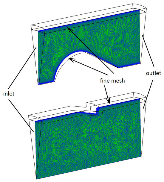 In general, the assumption of such a numerical model is to study a repetitive fragment of the channel geometry, rather than its entire length. This approach allows us to increase the accuracy and quality of the computational mesh and at the same time significantly reduce the computational time of each analyzed case.