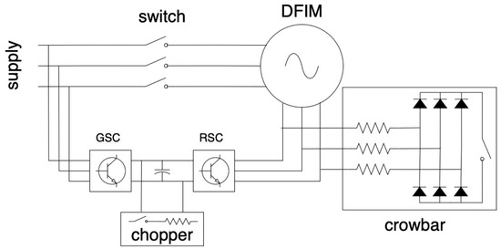 A basic and common DFIM architecture for wind turbines as considered in this paper is illustrated in Figure 1. It emphasizes its key elements that influence how it behaves during voltage drops [9].