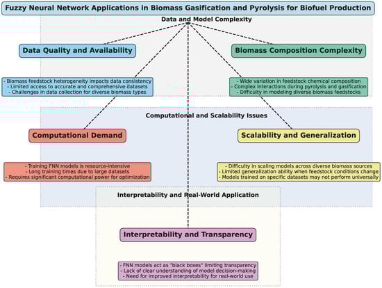 In addition to biofuel production, there is a growing emphasis on optimizing biomass conversion processes, such as gasification, pyrolysis, and anaerobic digestion. These processes transform organic waste into valuable energy carriers like biogas, biochar, bio-oil, and hydrogen. Researchers are increasingly leveraging fuzzy neural networks (FNNs) to improve the efficiency of these conversion techniques by addressing complex nonlinearities and uncertainties []. Advanced modeling approaches, such as genetic algorithms and response surface methods, are often integrated with FNNs to optimize process parameters, improve performance, and minimize emissions.