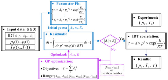 The standardization procedure for the IDTs obtained from RCM is shown in Figure 2, which mainly includes input data preparation, IDT correlation (parameter fit), and hyperparameter optimization (residuals and GP optimization).