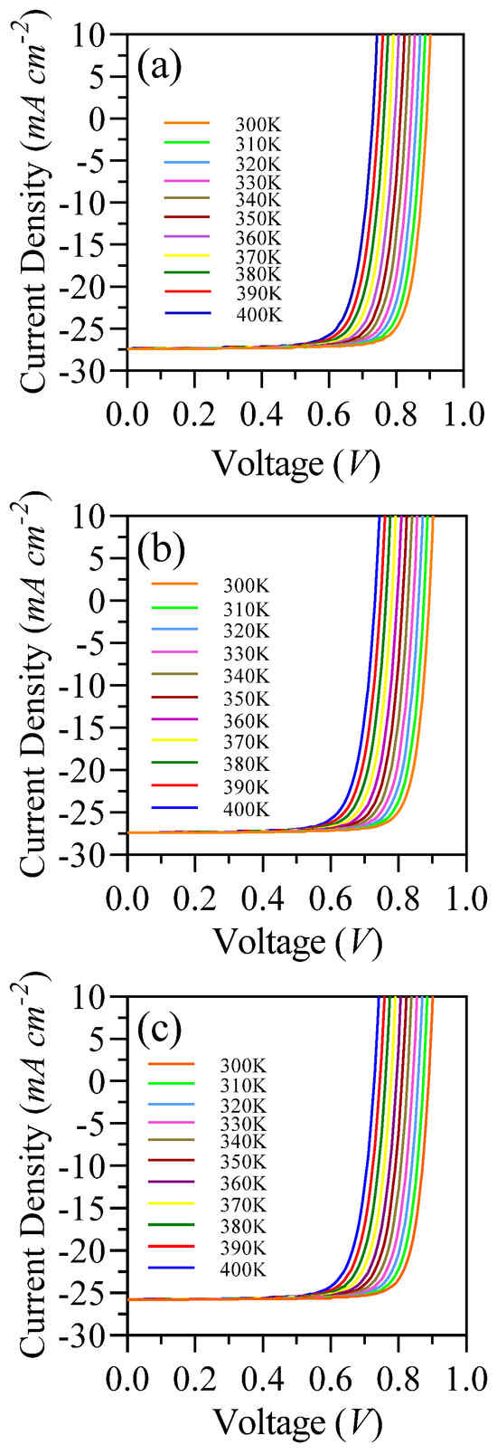 Table 4. The photovoltaic parameters of three devices (S1, S2, and S3) under different temperatures.