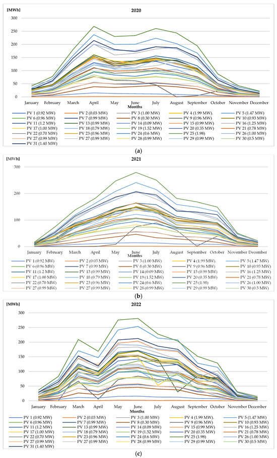 Statements of the amount of electricity injected into the grid monthly in 2017–2022 from photovoltaic installations implemented under the Regional Operational Program of the Lublin Province (ROP WL) 2007–2013 were obtained from Polska Grupa Energetyczna S.A. Distribution Branch of Lublin.