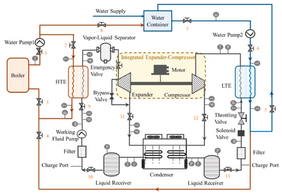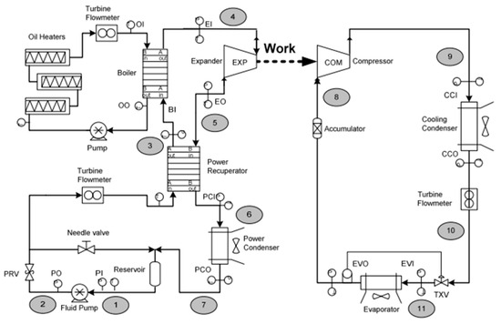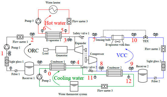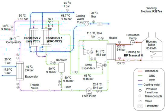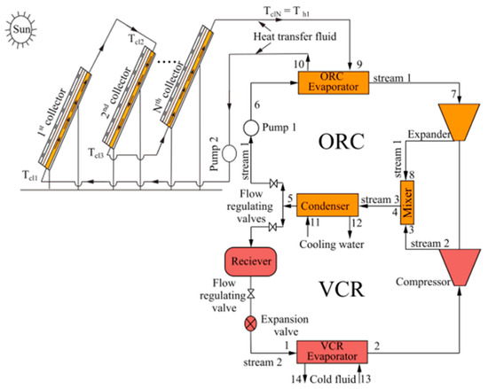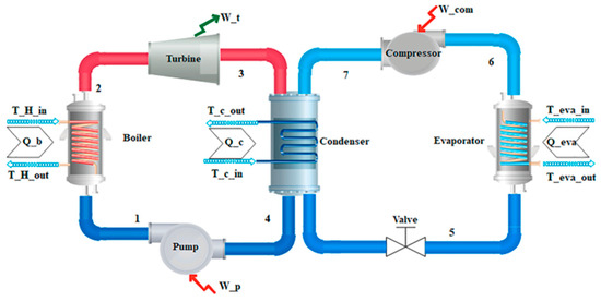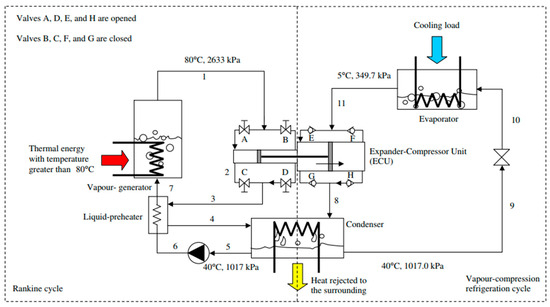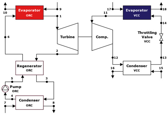 For the above example of an ORC–VCC system, where the ORC expander and VCC compressor are coupled by a common shaft, the process looks like the following (Figure 2):