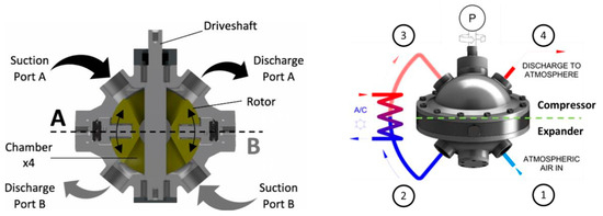 - Alshammari, S.; Kadam, S.T.; Yu, Z. Assessment of single rotor expander-compressor device in combined organic Rankine cycle (ORC) and vapor compression refrigeration cycle (VCR). Energy 2023, 282, 128763. [Google Scholar] [CrossRef]