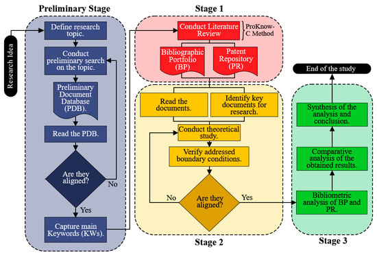 In this context, the process of a systematic review is illustrated by the flowchart in Figure 2. Its organization involves a preliminary search for documents related to the topic to be investigated. These documents form a PDB, which should be studied to ensure alignment with the topic. Subsequently, the most common KWs should be extracted and combined, resulting in the main terms that will be used as references for creating the BP and PR. A general study of the obtained documents is conducted to ensure their relevance to the most pertinent information for investigating the proposed topic.